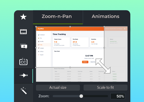 Correct, modify, and optimize your cursor path. Add paths and clicks to any image, video, or media element for additional clarity and movement.